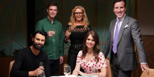 A bunch of celebs go to a fancy restaurant and all put their cards in the middle of the table. Between courses they play games, the winner gets to take their card back. The ultimate loser has to pay for the evening.