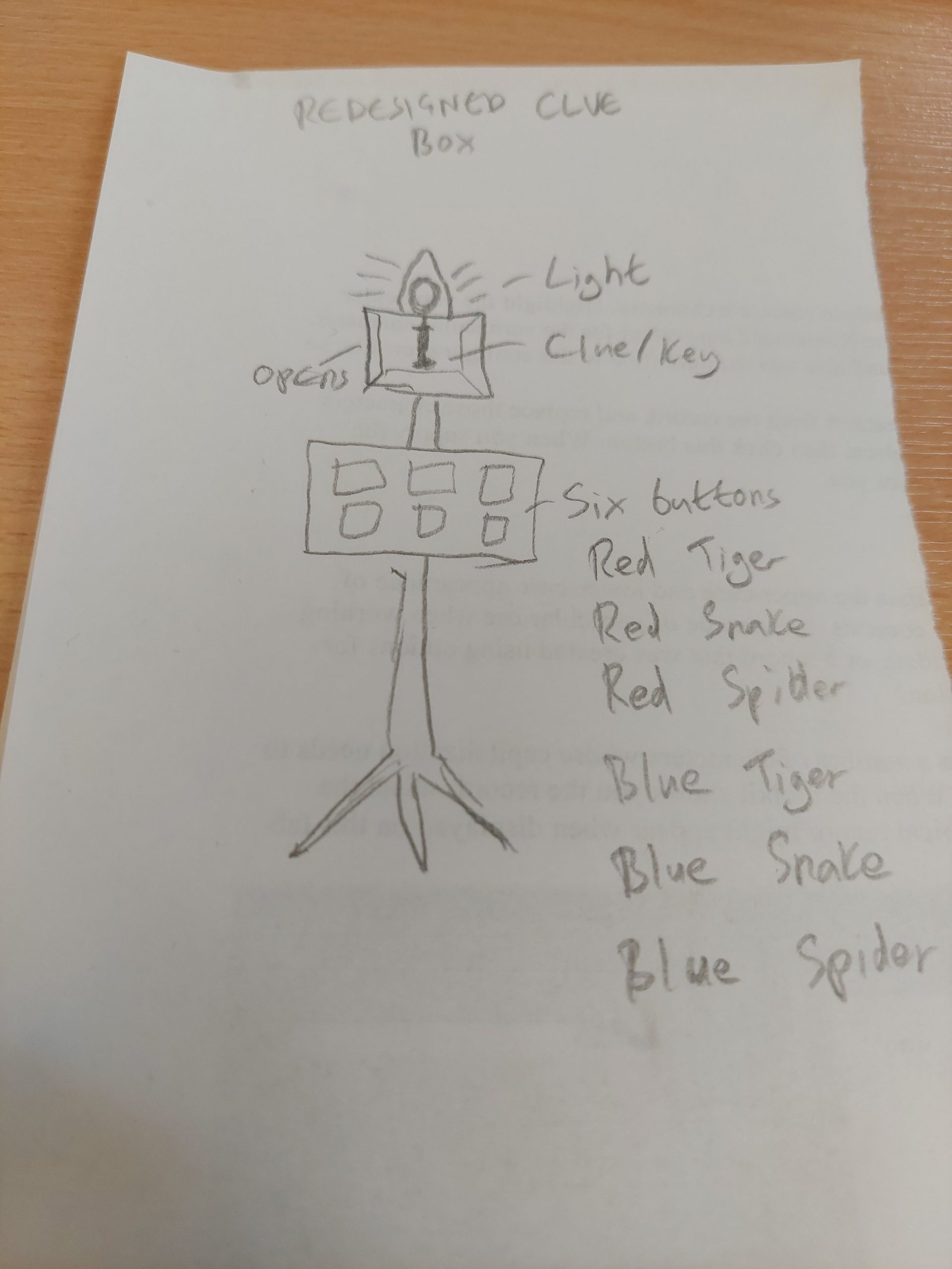 Also I’ve been desperate to redesign the clue boxes for years and years. Combination locks are so *rubbish* for TV. So here’s a very simple pencil drawing of an idea I’ve been playing with:
