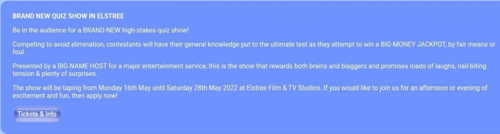 Also mentioned on SRO: apparently Celebability with Iain Stirling is back, and filming at BBC Elstree from May 6th-13th.