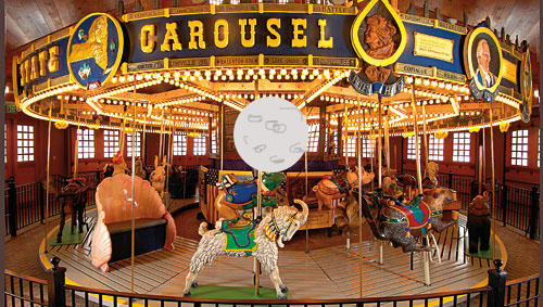 OK. My initial correct response to this was “or a carnival balloon” feeling that the “like” was implied, but the first acceptable answer given was from Twitter’s Bubbobz who correctly argued that the next thing that’s “like …” is “a carousel that’s turning, running rings around the moon” so I quickly made a photoshop of it. I would be hard pushed not to accept either answer, which just goes to show how hard writing really good questions for Only Connect is.