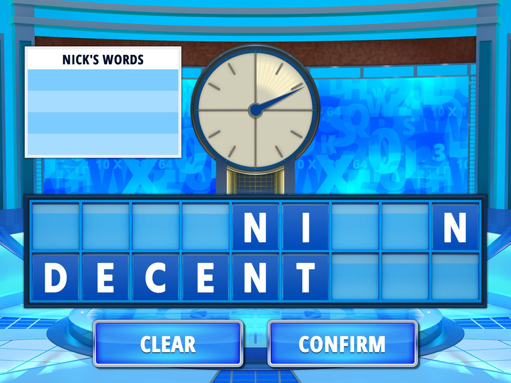 Two player is pass and play except for the conundrum which is first on the buzzer. It’s a shame that there seems to be no way to play two player simultaneously pad and pencil using the screen as a board, if you’re playing a full fifteen round game in two player you’ll hear the clock 29 times total. Maybe also a system to choose your own Countdown make-up would be nice – pretend you’re back in the eighties with Richard and Carol in a nine-round game perhaps.