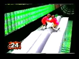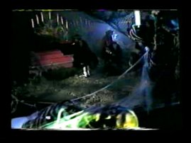 There was another game that was used in rotation periodically (I think in place of The Abyss). One person was trapped in a hanging cage and basically whimpered and pleaded at their partner the entire time to free them. Their partner had to cross a sort of balance beam to save them (it was probably a foot wide, but it had a rounded top, likely because of padding, so it was still somewhat tricky to stay on). However, the hero could carry some skulls (or some other weighted object, this is where my memory starts getting blurry) on the ends of a small pole to the other side. If I remember right, each object carried either lowered the cage a certain amount, or was worth a certain number of points or something like that. Falling off the beam meant vaporization and the end of the round. I can’t remember if there was a time limit on this game or not. I vaguely remember someone going back to get more objects to carry over (but fell in and got vaporized).
