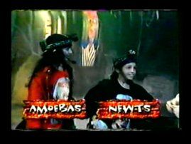 Neither team completely fills up their stake, but using our eyes and taking camera perspective into account, it’s plain ot see that the Amoebas have one more skull than The Newts. Fifty points to them!