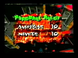 Completely unfairly however, whilst The Amoebas have to clamber all over the wall to get to their answers, all The Newts answers were reachable from that first ladder on the left. The Newts got all theirs, The Amoebas did not. Playtesting, there.