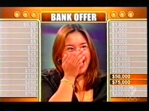 There’s a clip floating round the internet (on the Aussie Game Show Page) of a guy who has only the $5 and the $200,000 briefcases left, and the bank offer him $102,500. I won’t tell you what happens.