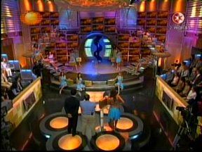 Rather amusingly, in the USA version of Vas o No Vas‘s keypad busting quiz appears to be sponsored by T-Mobile. So the quiz was done on mobile phones. Also, as I understand it, the models are called las bombaletz (the beauties).