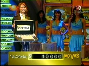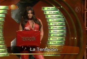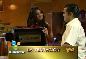 Thanks to Travis P for providing some pictures, in more recent episodes of Vas or No Vas, the contestant who wins the right to play the briefcases first decide whether to give into Temptation or not.