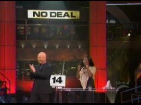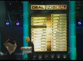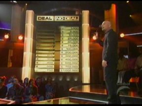 “One million dollars as a top prize. No crazy stunts. No trivia questions. All they have to do is be able to answer the most important question tonight… [Walks through door into studio] and that question is… Deal or no deal?”