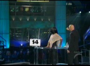She’s asked to pick a briefcase, she chooses number 14. The model brings it down.
