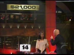The offer is $21,000. There’s no chat with the Banker, just an “uh-huh” and puts the phone down. He says it, it goes up on the Banker’s Board (this all strikes us as being a bit pointless, like they’ve chosen the worst of both worlds, but never mind). It also appears on the main scoreboard.