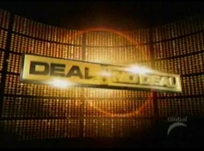 The very short title sequence – two shiny gold blocks with “Deal or” and “No Deal” spinning into view and then fusing together.