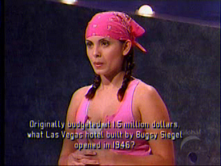 This bit is similar to our endgame. A category appears on the Circuit City big screen, and Top Dog has to select one of the losers to answer a question on that category. If they get it wrong, Top Dog gets a point. If they get it right, they get a point. Whoever reaches three points first wins the $25,000.
