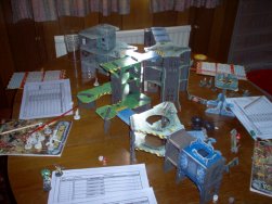Once this is decided the Arbitrator sets up the scenery and rolls 2D6 for every player in the game, this is the number of cred counters. The Arbitrator places these anywhere on the board as long as they are 4″ from any other counters.