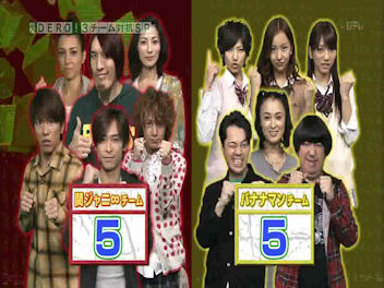 OK, let’s begin by meeting the contestants. Usually there are two teams, but this is a special episode so there are going to be three. Like many Japanese games, many of the contestants are regulars. They change the rules and the set-up regularly so what’s given in this feature may be different in other episodes.