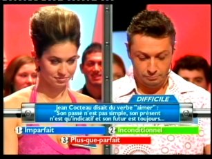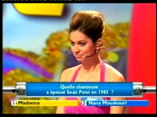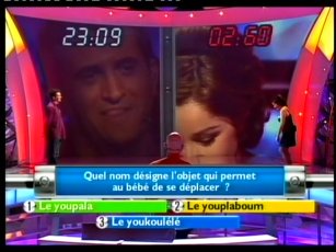 As is de riguer for TF1 gameshows seemingly, the rounds are punctuated by random bits of music for people to react to.