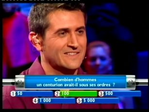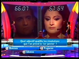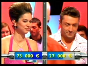 And now we’re down to the semi-final. As you can see, Francois has amassed 100,000 Euros, whilst Elisabeth has amassed 150,000 Euros. Whoever wins this round will play for their prize in the final.
