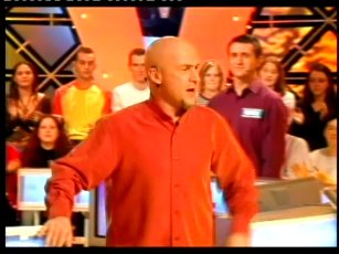 This contestant has got a question wrong. As you can see, the floor in front of him has turned yellow – this means that his card is marked.