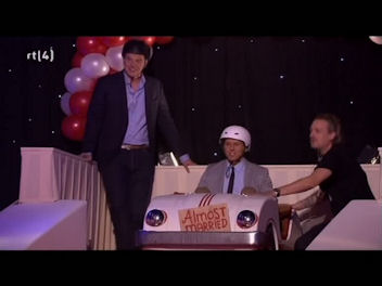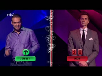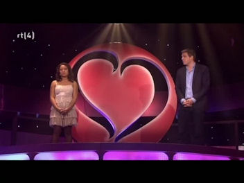Teams are asked questions alternately. Each time the question asks what percentage of Netherlanders think in a certain way – presumably they are all romance related, but I can’t be sure. Once they lock in an answer, a contestant from the other team is asked to guess whther the actual answer is higher or lower than the original guess. If they are wrong, they’re out, if they are right then the original percentage gver is eliminated.