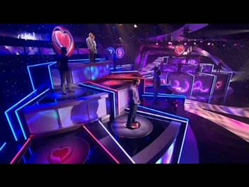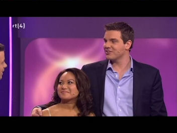 The first game is a game of luck – one giant die, three faces with one couple on, the other three with the other. The die is chucked from the audience on to the studio floor, whose faces will be showing on top?