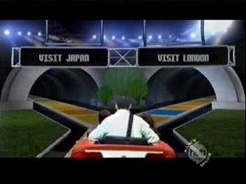 The second adventure takes a slightly different tack. Instead of choosing a career, you choose from connected but differing things – here we have “Visit Japan” or “Visit London”, in which case you get questions on either Japan or London, in another show there’s “Sing a duet with Taylor Swift” or “Visit the Queen”, in which case the questions are about Taylor Swift and The Queen respectively.