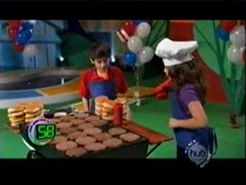 The final adventure is a physical challenge. Today we’re pretending it’s the 4th July celebrations and we’re having a barbeque. One person picks up a burger, puts it in the bun and adds ketchup. The second person wraps the completed burger in foil…