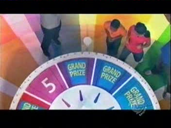 Here they’ve shosen even, and brilliantly the numbers flip over to represent the bonus prize. The kid team captain gives the wheel a spin.