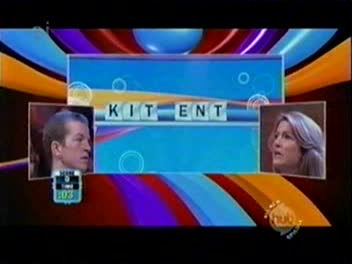 This game is Scrabble Scream, once again a race to complete five words in the fastest time possible. A word is split into two parts, the first of three letters, the second of three to five letters. The letters in each part are scrambled. The first person unscrambles the first three letters to form the first half of a word. The other letters are then revealed to their partner who unscrambles them and shouts the word out. In this example here, ‘TIK’ and ‘ENT’ becomes “kitten”.