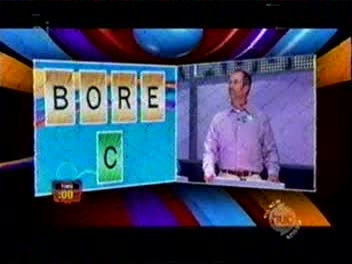Four rounds are played. The first two are a perm two from five affair (I will show four, although the fifth, Speedword, I can’t find and was apparently only played once), Round three is Scrabble Flash, The all-important round four is Scrabble Lightning. In the first three rounds, the winners win a prize (cinema tickets, a keyboard, home entertainment package etc) and they win two bonus tiles to help in the final round.