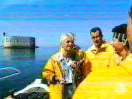 Here’s co-host Sophie Davant interviewing and briefing the team on the boat.