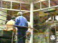 The plug is very heavy and they use a system of ropes and pulleys to move it up and out. In more recent years of course, they just used a big metal bar and pulled.