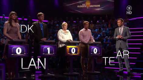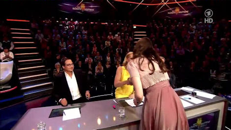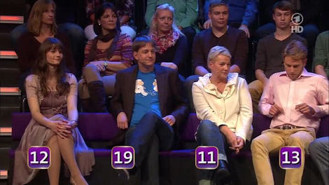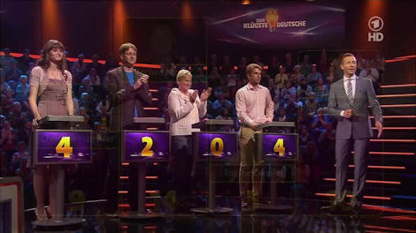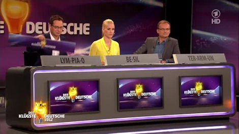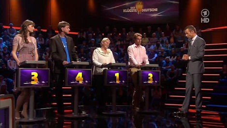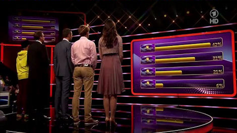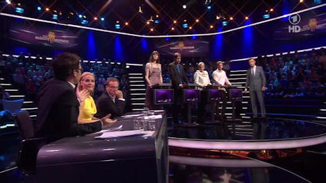 And here they are. Their quest to be crowned Germany’s Smartest is not over yet. First of all the audience will use their keypads to pick their favourite.