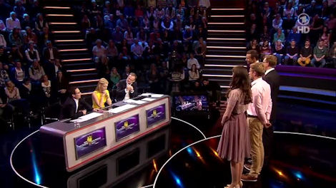 You may also feel like there are some similarities between this and BBC flop The People’s Quiz. As far as we know these are seperate and different shows. This is produced by I and U TV, Gunther Jauch’s production company (he’s the guy who hosts the German version of Who Wants to be a Millionaire? amongst other things).