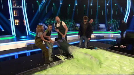 Minor trivia: commentator Tobias Drews actually commentated on the first four episodes of Schlag den Raab, before Frank Buschmann arrived as regular commentator.