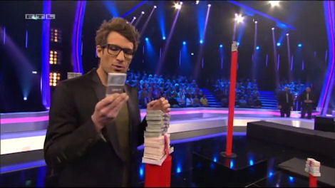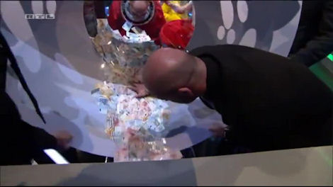 This is followed by four security guys bringing on the money in a big box. Daniel quickly points out that “it’s not RTL money, it’s real money!”