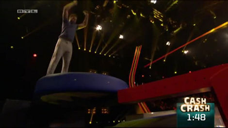 There’s high drama about thirty seconds in when the tall guy cloest to the money can’t get the momentum to swing back to the box, cue lots of panicking from the team as they try and work out the best way to get everyone swinging.