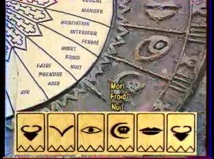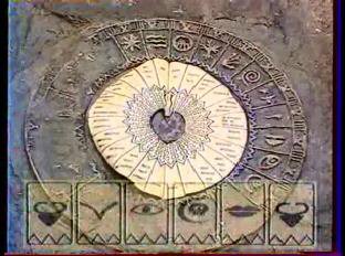 At various points along the trail are these stones. Sophie gets her key out and lays it on. The papyrus shows the riddle, it is up to the contestants to commit to memory what the relevant symbols mean.