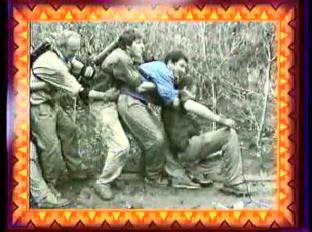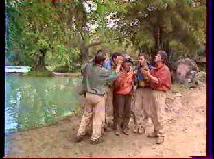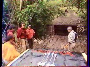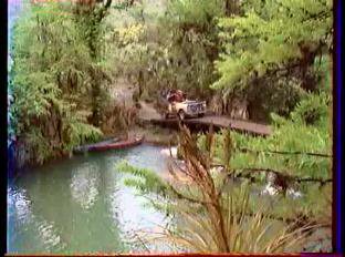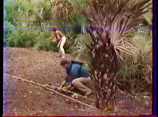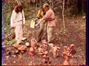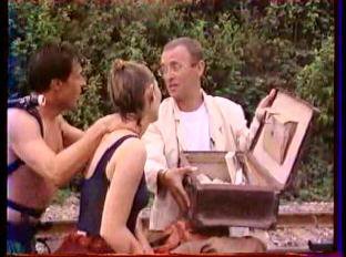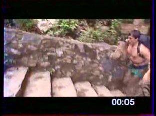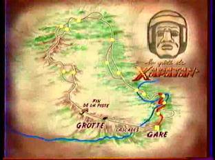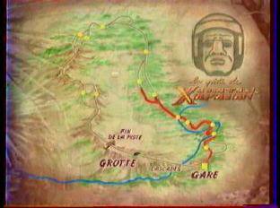 Right, this is an interesting one. Our episode comes without titles or credits, and there’s not an awful lot of literature regarding the show floating about, but I’ll try and describe as best as possible. La Piste de Xapatan (The Trail of Xapatan) was a Jacques Antoine invented jaunt through the jungles of Mexico that appeared on French television in 1992. It is hosted by Sophie Davant (who guides the contestants and drives them round in a jeep) and Gregory Franck who plays The Professor. The show is based around the legend of Xapatan, involving a young girl, a cave with jewel encrusted statues and angry Gods.