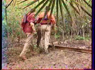 This bit consists of a rather baffling montage of the three remaining contestants running through jungle through their headcams.