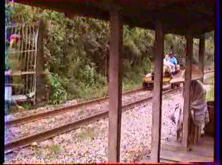 But they have to hurry as the train’s about to leave. To get them on their way, the contestants get to ride a very spectacular rope slide, lasting a good thirty seconds.