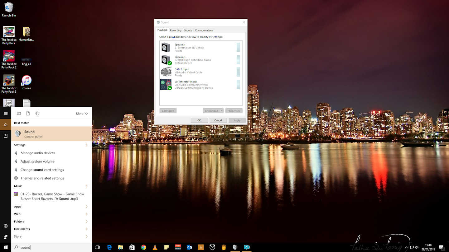 HOWEVER, uninstalling and reinstalling Voicemeeter and Virtual Cable, although a bit of a hassle, did seem to do the trick. So don’t panic, but if you’ve got something coming up it might be worthwhile having a check a little while before – if you can’t be bothered setting up a private Google Hangout, check the settings on Skype which are largely identical.