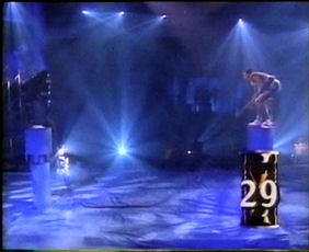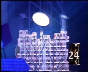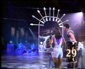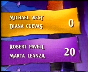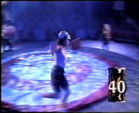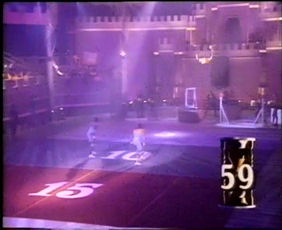 There is one minute for this game. Each game begins with a gong and trumpets. In some events the clock is on screen all the time, in others it disappears and comes back at the end.