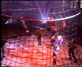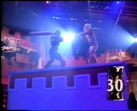 -The Pit’s rules were changed as well. The placed a non-scoring zone in the middle of the bowl, and the objective was for the Knights to simply knock a player down high enough in the bowl so the majority of their body landed in a scoring zone (there were off-screen refs who would sound an airhorn when a legal score was made). The scoring was the same.