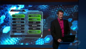 Host Tom Williams is quite good fun, but rather lacks Grant Bowler's sense of authority. He's quite likable and covered his rather schoolboyish errors on the live show quite well (errors which those with a bit more live experience probably wouldn't have made, in truth). The elimination quiz has changed quite dramatically in recent years, especially in the Aussie show. It began as twenty questions, dropped down to ten by series three, dropped down to six by series four and this year it's only five, so would feel a bit more of a crap shoot. This would appear to be deliberately designed so people can play along with the SMS competition (you text in the five letters representing the answers, if you get all five correct you get entered into a draw with $50,000 worth of prizes on offer). This means that all the questions are on the Mole's actions during the assignments and not on their life history. We're not convinced we approve. Still, though. 27th August 2005 Right, a weekend feature on QuizMaster is now up. First impressions of Aussie Mole: it feels very modern, we wish it would make its writing slightly bigger, we think if they're going to make the eliminations live then the show should be on twice a week to keep the inertia up. We hope that the clearly bigger budget doesn't mean all the challenges are going to be inherently physical. Looking forward to episode 2, that is all. We always thought calculating the Mole's fee should have been done along money lost with a detection penalty subtracted, and it's interesting to see that the Mole this yesr will be receiving everything the team don't win. I hope this still means they're getting lots of help from the producer. 25th August 2005 Da-duh, da-duh, da-duh-duh-duh BOO!Our copy of the Countdown board game arrived today. This was rather unexpected because we thought they wouldn't bother releasing it after Richard Whiteley's death, however released it they have. And it's fiddly. Let's crack on to the bit you're interested in - no you don't get a fully working replica clock. Instead you have an electronic button which provides the Countdown clock sound effect, and very loud and clear it is too. They advertise a proper clock with moving hand, but we've yet to find anywhere selling it. Letters and numbers come on playing card sized cards, and I highly recommend giving them a thorough shuffle. We thought we did, but we still managed to get four (count 'em) Ts in one selection, and Es were coming up so many times they were beginning to get cheers, as if they were a comedian retelling a classic reference to some students. Numbers games work OK. They recommend shuffling the target number cards and then just dealing three out, but that would mean potentially getting a three figure number beginning with a 0, which isn't realistic enough. Nothing two minutes bodging won't sort, but still. Conundrums work OK, puzzles on one side of the card with the answer hidden by another card. You wish it would be a bit bigger though. The pencils aren't very sharp, and you don't get an awful lot of paper to write on frankly. Overall: 5/10 - it plays Countdown fine, but they've really put very little effort into it. In other news: nobody has put The Mole up yet. :( We have discovered that the contestants fly between Sydney and New Zealand every week, and the eliminations are live. It's The Mole gone reality! 24th August 2005 Reality Special!Thanks to the excellent Robbie of the excellent International Mole Page, we've got some interesting news on some forthcoming Dutch reality shows which sound interesting. First up, a new series of Expeditie Robinson (Survivor). Last time it was Belgium versus the Netherlands, this year it's under 30s against over 30s. Here's a link to the official trailer, it's two and a half minutes long. Somoene else has told me that the trailer hints at subtle and slight religious imagery, however I think I missed it. If someone else can spot it, please drop us a line. Next up: Terra Incognita. I'll quote the e-mail here I think: " An all new show from the creators of Expeditie Robinson (who had to come up with something new now that Expeditie Robinson had been taken away from them by another channel. 18 contestants try to live the lives of an almost forgotten civilization. In the first season they're following the footsteps of the Moken, seanomads in Thailand. There are three levels in the game: main land, the island Koh Muk and the island Rang Nok. They have to play battles to get promoted to a higher level. Six people will go on to the higher level and receive a mysterious book of the lives of the Moken. However, the last pages of the book are missing. Interesting, no? The world's first fantasy reality show. Oberon sounds a bit like something we heard was set to go up against Fort Boyard in France this year. Whether it's the same thing or not I don't know. (Sidefact: Fort Boyard has held up remarkably well against the onslaught of Lost, a show which we just can't get into, incidentally). Of course, it should go without saying that the new series of Dutch Big Brother begins on John de Mol's Talpa network... this evening, we think (goes and checks)... yes, this evening from 10pm CET. You can watch it all for free, according to Digital Spy. It is perhaps interesting that they are using our BB6 Shattered logo for their version. And Aussie Mole starts tomorrow! Rest assured we'll be scanning newsgroups and BitTorrent to see if it's downloadable anywhere. And if it is, we'll tell you. Russ LandauWe can't get the clip of Deal or No Deal to work on the Russ Landau site. Is it just us, or is it everybody? Finally, we had all of one person list some things they rated and hated. We need a few more than that. 22nd August 2005 It's French Survivor!