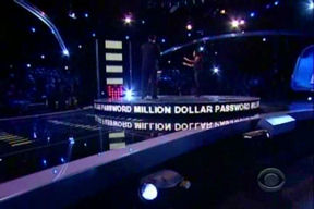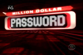 The winner will play the million dollar game with the celebrity who got them the most points. As you can see there are six steps to the million and here the game changes. They must correctly get five passwords at each level within 90 seconds. At level one they must get 5/10. For $25,000 they must get five from nine (this is the "safety level" - if they make it that far they go away with at least $25k), for $50k five from eight and so on until the million dollar level requiring five from five. They are given a chance to walk away with the cash between levels, and at the $250k level the giver is given the opportunity to see the first five words before they make a decision to continue playing. The words get harder as the money increases. |