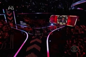 To prove how exciting and important this bit is, the central stage raises about a foot to reveal an electronic marquee. |