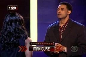 In each round, each player must get their partner to say up to five passwords within a thirty second time limit. To do this they must give one word (and one word only!) clues. After each clue, the partner must have one guess (and just one) at the word - if they can't think of anything they can just say "clue" to move on. The clue giver must not gesticulate wildly with their hands but can give large hints with clever use of expression, inflection and emphasis. Antonyms are allowed after they were banned in the late seventies. Clues may use bits of the password provided they form a proper unique word in their own right (e.g. "manicure" for "pedicure" is OK in a way that would get thrown out on Pyramid). Any breakage of the rules throws the password out. Regis quickly explains the ruling, we can't quite tell if it's live or added in post. The passwords in a round are not thematically linked. |